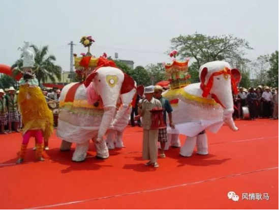 白象舞是云南耿馬縣傣族群眾盛行跳的一種民間舞蹈,也是耿馬特有的舞種,白象舞屬雙人擬獸舞,十分講究舞者之間的默契配合。舞蹈步伐穩(wěn)健、有力。舞蹈基本動(dòng)作有:“原蹈步”、“前后跳”、“左右跳”、“鼻走”等。經(jīng)過(guò)民間藝人長(zhǎng)期不斷改進(jìn),而今,耿馬白象舞已經(jīng)形成了一整套基本舞步,表演者借助白象道具模仿大象動(dòng)作,把笨拙的大象表現(xiàn)得活潑可愛(ài)、步伐穩(wěn)健、韻律十足。