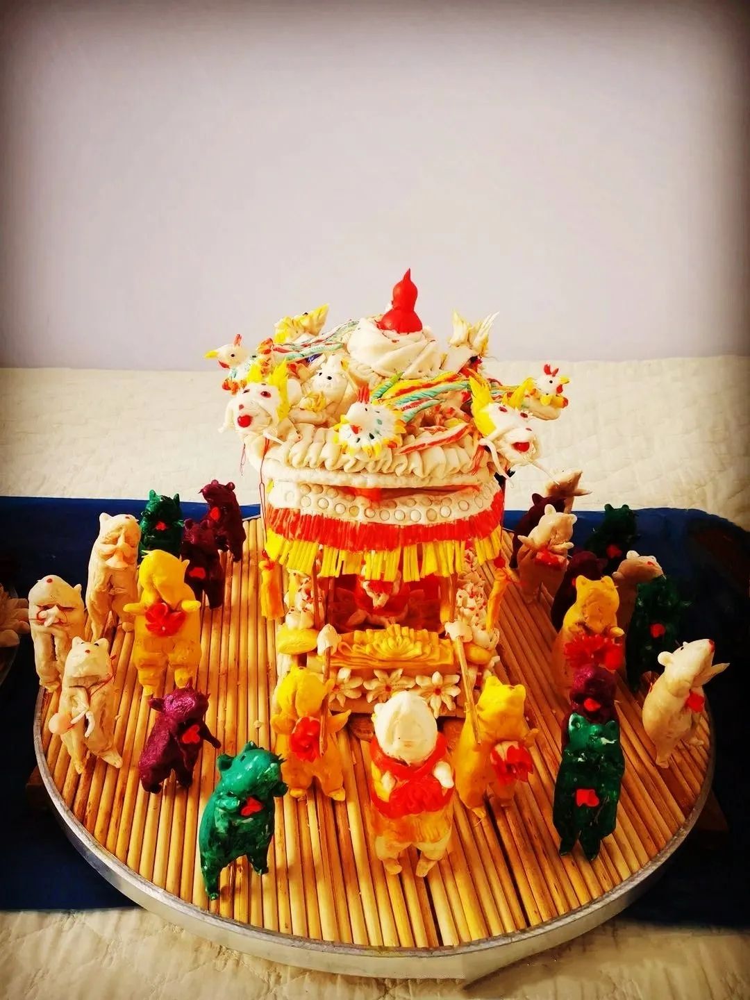 由于托克托縣地理位置獨(dú)特,早在清朝時(shí)期是塞外聞名的“水旱碼頭”,這里交通便利,經(jīng)濟(jì)繁榮??涤呵瑫r(shí)期兩翼土地的放墾,成為口外漢族村落形成的主要原因。到乾嘉之際,土默川縱橫900余里田陌相望,農(nóng)商兩業(yè)日臻繁盛。大批山西、陜西、河北等地農(nóng)民、商人、小手工業(yè)者紛紛來到這里種田、經(jīng)商及傳授手工技藝。從而晉陜地區(qū)的捏面人手工技藝也被帶到托克托縣地區(qū),在這里漢族和少數(shù)民族(主要是蒙古族)相互融合,形成了獨(dú)具特色的托克托縣面塑技藝。內(nèi)蒙古自治區(qū)級(jí)非物質(zhì)文化遺產(chǎn)代表性傳承人薛籽女,托克托縣章蓋營村人,是自治區(qū)級(jí)托克托縣面塑傳承人,下面展示的是她創(chuàng)作的面塑作品:《老鼠娶親》、《鼠年抗疫情》、《千手觀音》。