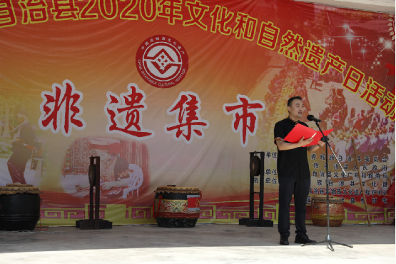 自治區(qū)非物質(zhì)文化遺產(chǎn)保護(hù)中心朱鳳立書記擊鑼宣布“非遺集市”開市