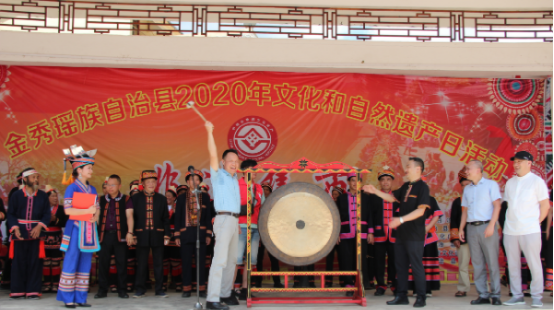 “擊鑼開市”“山歌傳情”“瑤醫(yī)問診”“吃樹葉豆腐”“跳黃泥鼓舞”,6月13日,廣西來賓市金秀瑤族自治縣2020年“文化和自然遺產(chǎn)日”——“非遺集市”活動在羅香鄉(xiāng)橫村瑤寨拉開序幕。廣西壯族自治區(qū)非物質(zhì)文化遺產(chǎn)保護(hù)中心書記朱鳳立、金秀瑤族自治縣人民政府副縣長馬峰為“非遺”集市“擊鑼開市”。