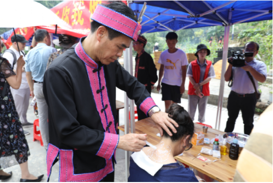 本次活動以2020年“文化和自然遺產(chǎn)日”的“非遺傳承,健康生活”為主題,重點圍繞傳統(tǒng)醫(yī)藥項目保護(hù),普及“非遺”知識和健康生活理念,營造全社會共同參與、關(guān)注和保護(hù)傳承優(yōu)秀傳統(tǒng)文化濃厚氛圍而開展。邀請十位瑤醫(yī)藥傳承人帶領(lǐng)40多位瑤醫(yī)弟子各顯神通,在現(xiàn)場開展非遺項目義診活動,為游客免費問疹,展示泡藥療法、針灸療法、燈草療法、坐浴療法、拉伽通灸療法等10種技法。瑤寨里每一戶人家拿出拿手絕活在自家進(jìn)行現(xiàn)場展示,黃泥鼓制作、樹葉豆腐制作、瑤族織繡技藝、釀酒技藝、舂糍粑、原創(chuàng)歌曲展示等,豐富多彩的各種技藝,讓游客流連忘返。