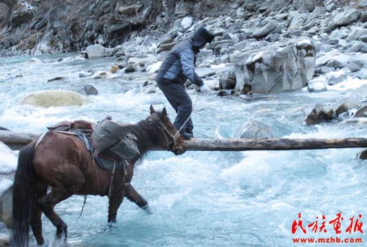 居馬泰·俄白克行走在獨(dú)木橋上(劉靈波 攝影)