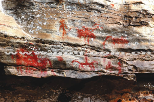 巫山巖畫面積達(dá)五百平方米,是迄今貴州發(fā)現(xiàn)的面積最大、圖像最多、內(nèi)容最豐富的巖畫群。它生動再現(xiàn)了遠(yuǎn)古人類悲壯的生命歷程,具有很高的歷史價值和藝術(shù)價值,2015年被列為貴州省重點文物保護(hù)單位。整個崖壁高40- 60米,長約150米,紅褐色的巖畫集中分布于崖壁下部1- 5米、長約100米的范圍。巖畫的個體大小不一,大的近50厘米,小的只有幾厘米,巖畫內(nèi)容為祭祀舞蹈圖、原始生殖崇拜圖、田疇圖,以及各種形狀的家禽等,反映了原始的經(jīng)濟(jì)生活、宗教信仰、審美觀念等豐富內(nèi)涵。