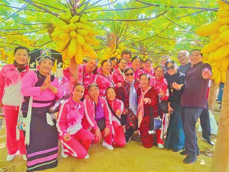通過(guò)充分發(fā)掘古佛寺、民族文化廣場(chǎng)、白龍?bào)?、榕?shù)王等獨(dú)特自然資源,那京群眾主動(dòng)投工投勞10000余人次,大干基礎(chǔ)設(shè)施建設(shè),打造鄉(xiāng)村旅游景觀景致,修建道路7500米、景觀池16個(gè),栽種景觀苗木5萬(wàn)余株,修建棧道2100米。如今,那京參天古樹(shù)矗立、孔雀悠閑散步、進(jìn)組道路通達(dá),開(kāi)始迎來(lái)了四面八方的游客。這個(gè)僅有37戶人家的村寨開(kāi)起10家農(nóng)家樂(lè),2019年旅游收入已超過(guò)傳統(tǒng)農(nóng)業(yè)產(chǎn)業(yè)收入,達(dá)360余萬(wàn)元。