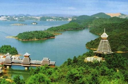 紅楓湖宛如一面晶瑩的寶鏡,鑲嵌在貴州省中部的清鎮(zhèn)與平壩縣之間。湖水面積57平方公里,相當于北京十三陵水庫的13倍,杭州西湖的10倍,深達100米左右,有“高原明珠”之譽。