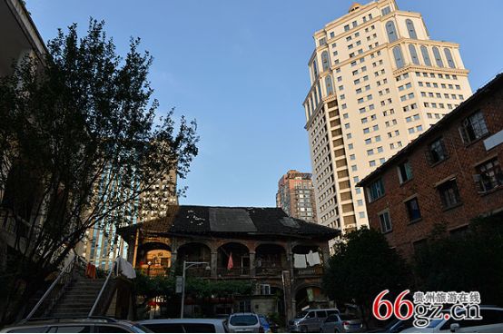 在中華北路主大街中段,穿過一個百米左右的小巷子,沿著一個小斜坡往上,盡頭一個寬敞的大院子就是“毛公館”。但是比起貴陽現(xiàn)存的其他民國建筑,“毛公館”顯得殘破不堪。如今的大院已看不出任何歷史文化古跡的痕跡,“毛公館”周邊已經(jīng)被兩個小高層建筑包圍,大院邊是一棟富麗堂皇的銀行辦公大樓和一棟證券大樓,相比起來,“毛公館”的存在顯得與這個城市格格不入。