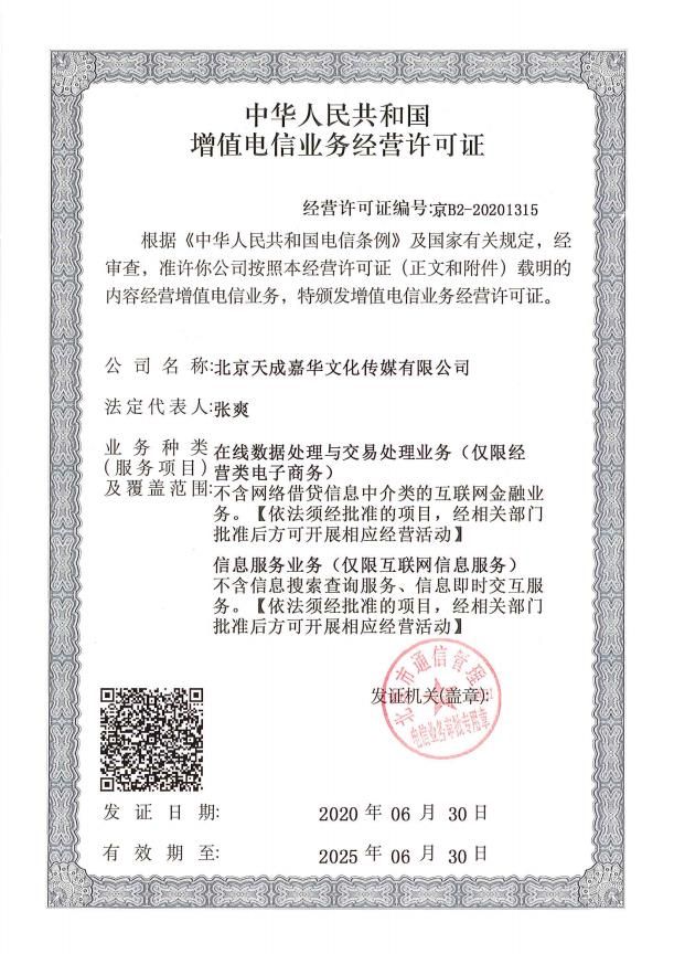 增值電信業(yè)務(wù)經(jīng)營(yíng)許可證B2-20201315